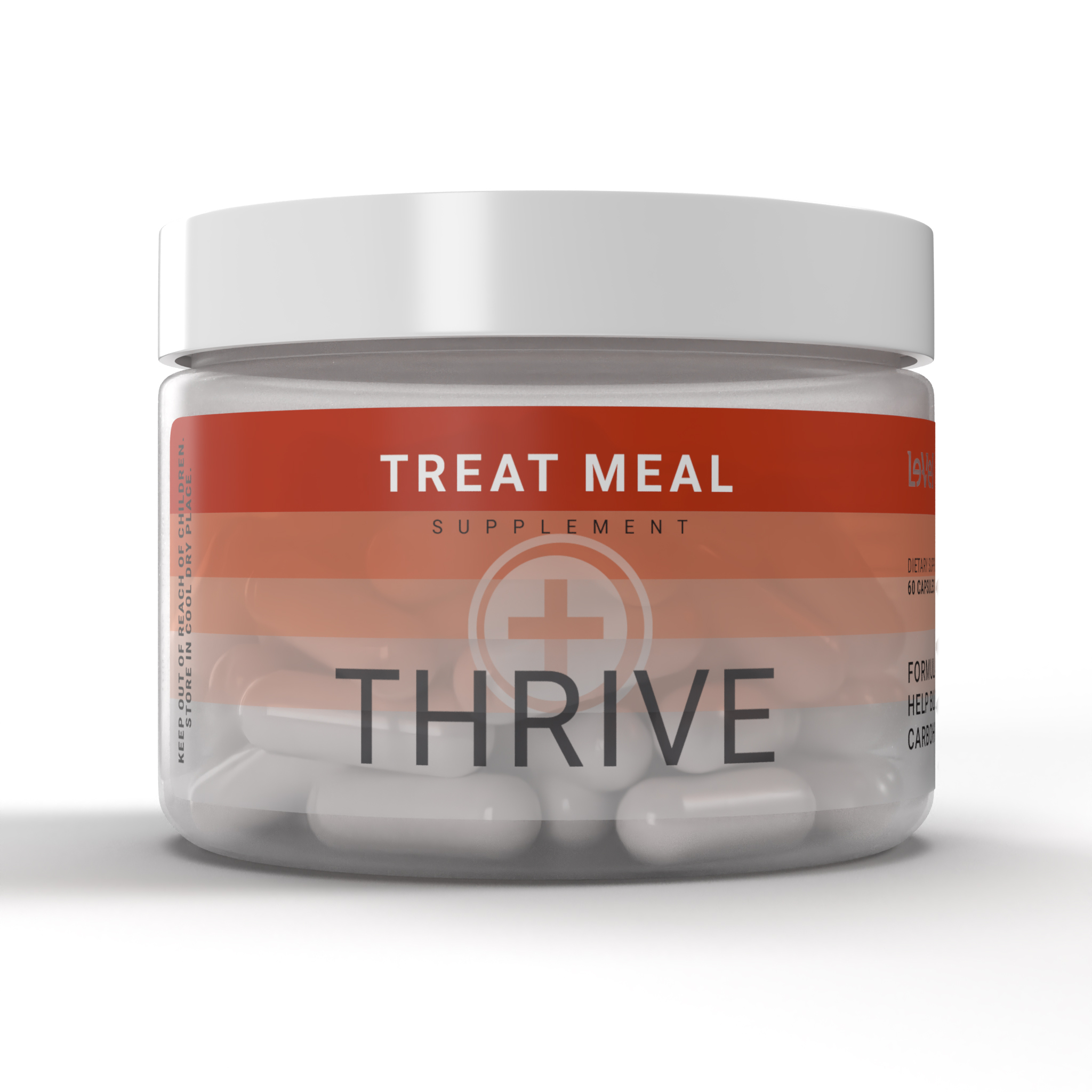 Consider adding THRIVE Treat Meal to your daily THRIVE Experience, as well as taking when needed with high carbohydrate, high fat and sugary meals. Take Treat Meal with a glass of water.
